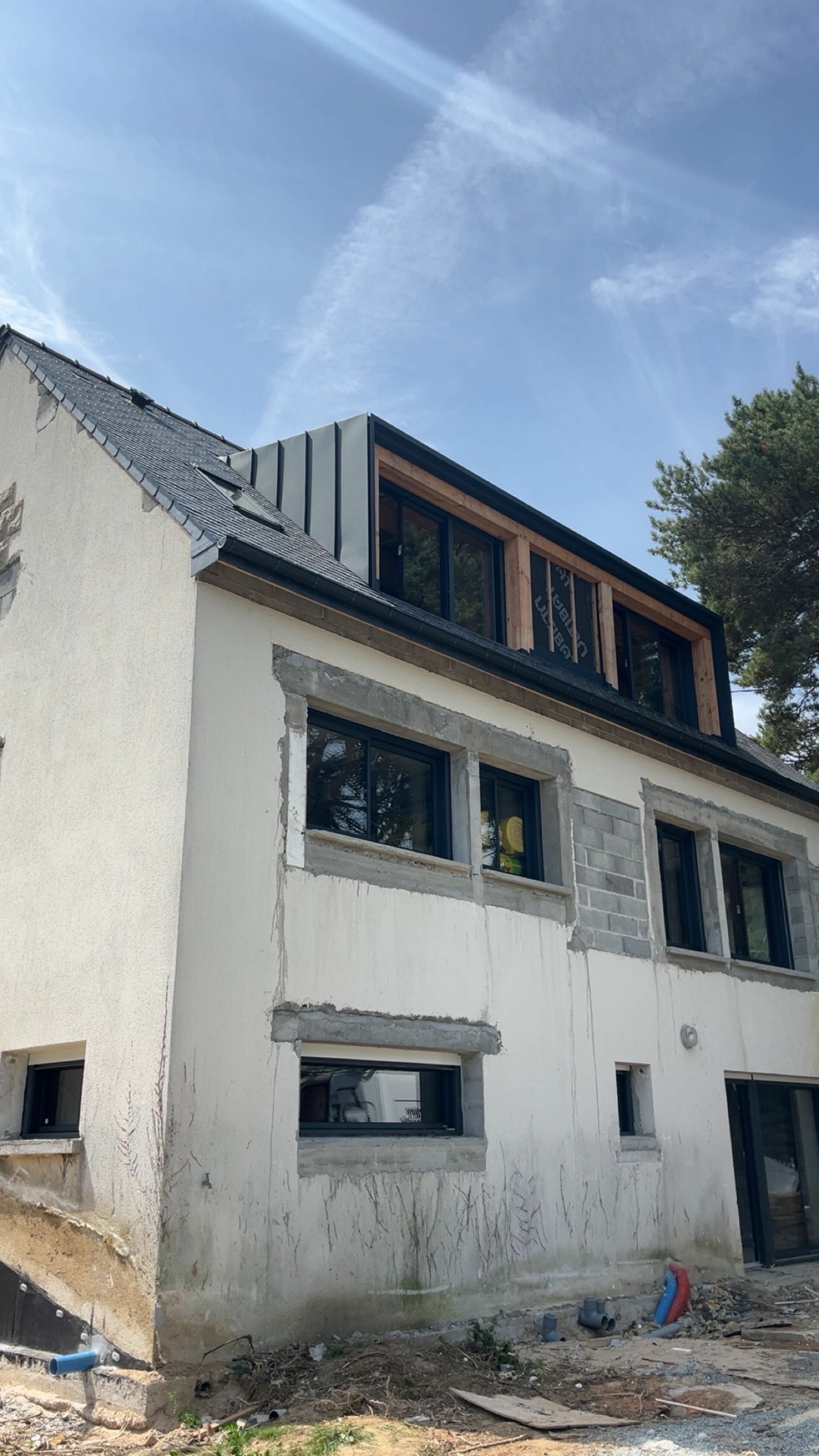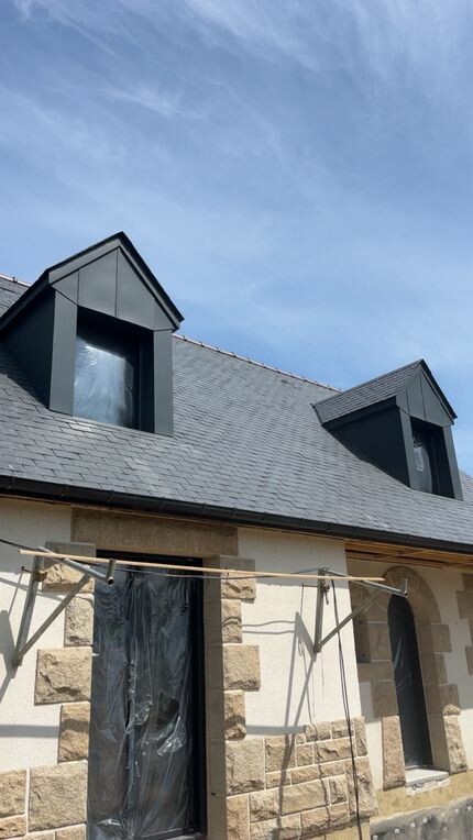 Création de lucarnes rampantes en aluminium gris façon joint debout.