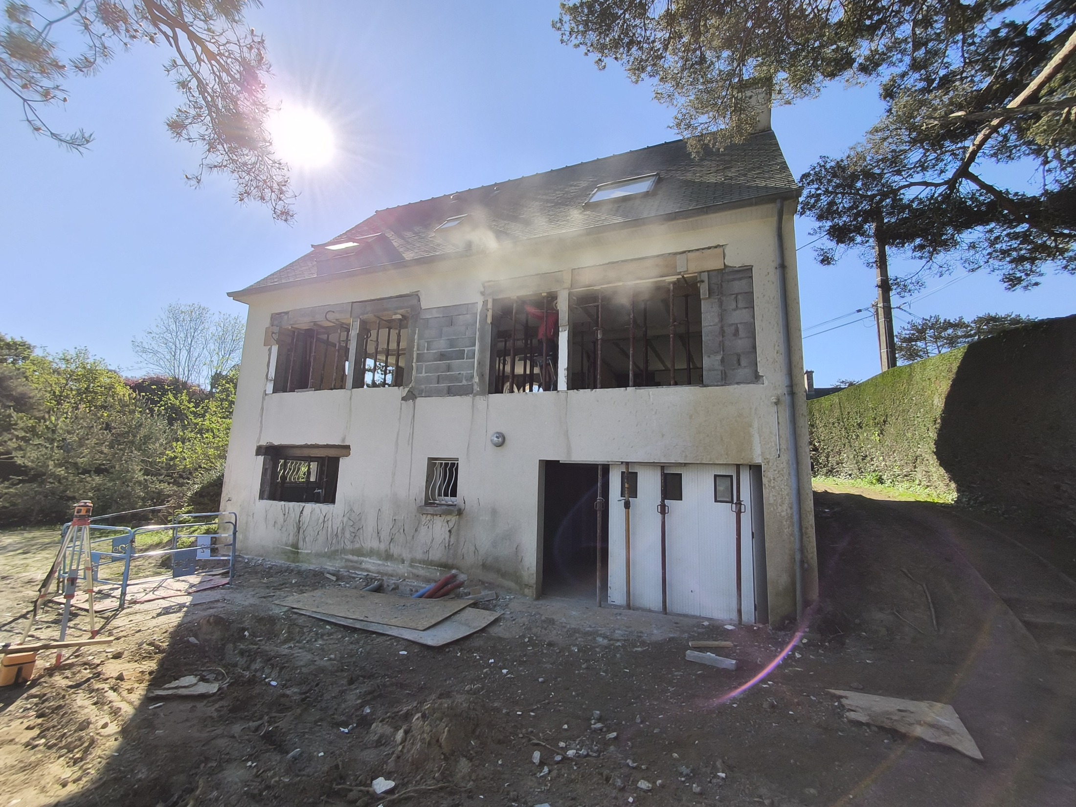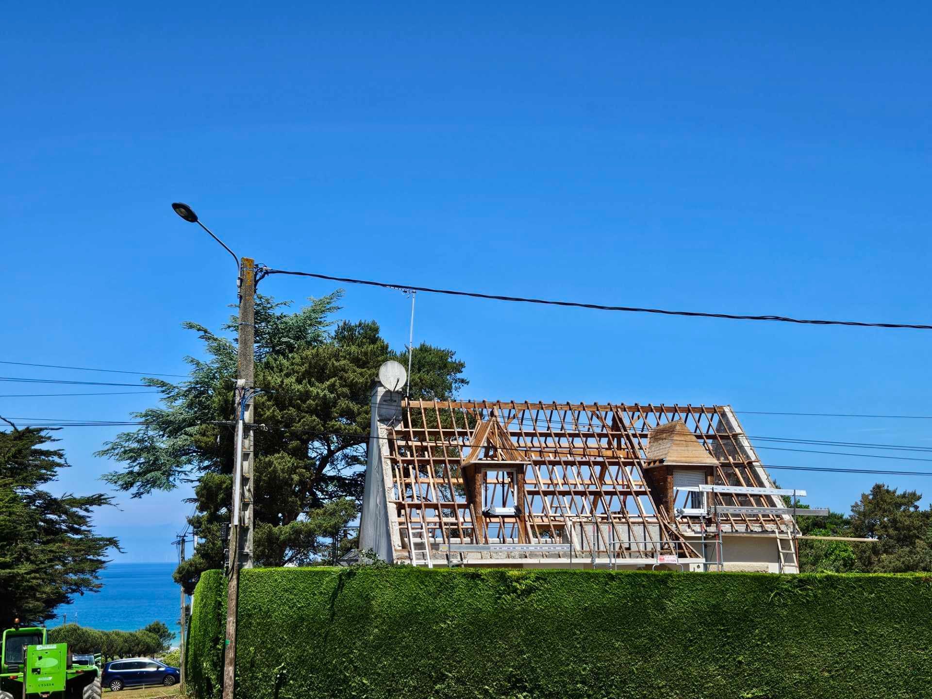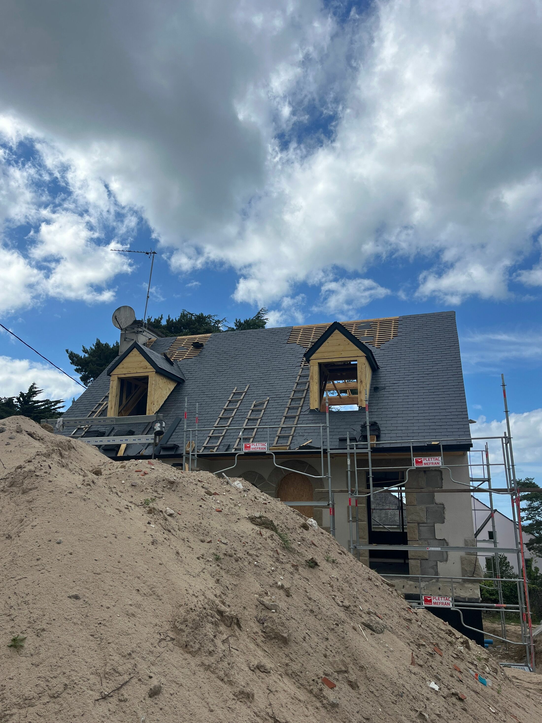Mise en place d'une couverture en ardoises naturelles avec des lucarnes gerbières.